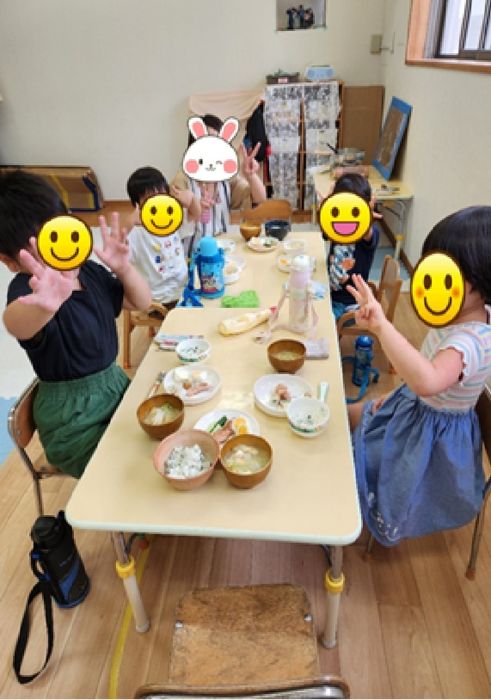 「お家でも一緒に料理のお手伝いをしました」、「とても関心を持っています」とお便りで聞くこともあります。みんなで作った味噌汁、おかわりをして美味しくいただきました♪