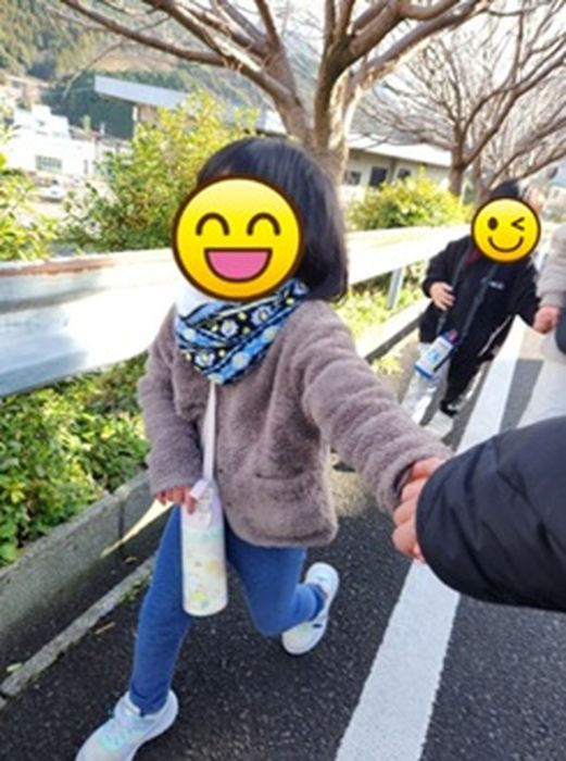 また、年長児さんは、就学に向け体力作りも兼ねた1時間程の散歩も取り入れています。白線の内側を歩く、交差点での左右の確認、信号の確認なども行っています。