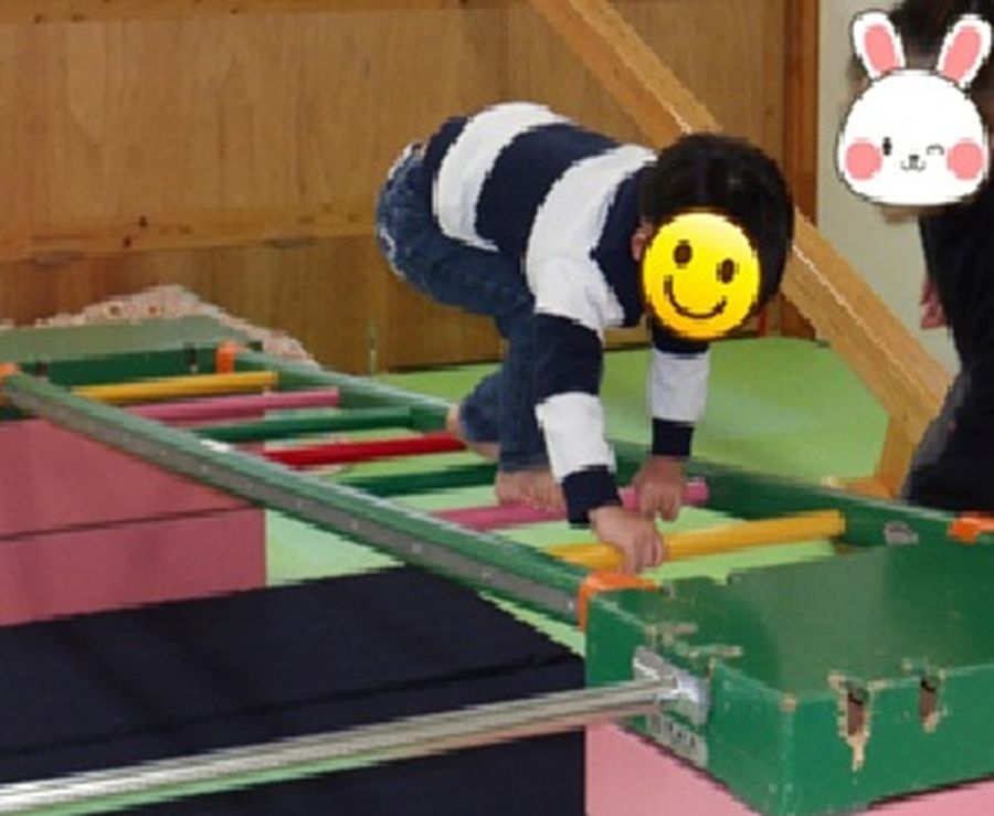 こうさぎでは、日々の活動の中に巧技台、鉄棒、はしご、平均台を組み合わせてサーキットをしたり、バランスボールを使って運動遊びを行っています。身体を動かすことで、手と足の使い方やバランス感覚が身につきます。また、次は何をする?と順番の見通しを立てることに繋がります。「楽しい、できた!」という達成感から子どもたちの意欲や自信に繋がるよう支援しています。