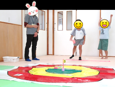 午後は普段クラスで取り組んでいる集団活動を取り入れ「のうさぎボッチャ」を行いました。
